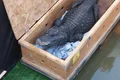 În alte imagini se văd mai mulţi crocodili de circa doi metri lungime, aşezaţi pe un drum, cu fălcile legate cu bandă adezivă roşie.