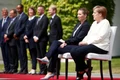 Angela Merkel, care se pregăteşte să-şi sărbătorească împlinirea vârstei de 65 de ani, s-a aşezat în mod excepţional pe un scaun la o ceremonie de intonare a imnurilor imnurilor naţionale, la o zi după o nouă criză de tremurat în public.