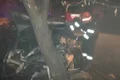 Dintr-un motiv necunoscut, cea de a doua nu a reuşit să oprească şi a intrat în prima, răsturnându-se cu tot cu pasageri.