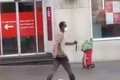 Agresorul, desculţ şi purtând o mască de protecţie, se împleticea, cu un cuţit lung în mână, pe stradă, în timp ce trecători încercau să-l oprească cu ajutorul unor scaune de pe terase ale unor cafenele şi bastoane.