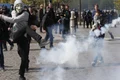 Poliţia a folosit gaze lacrimogene împotriva protestatarilor, după ce tinerii au început să arunce cu sticle şi pietre în apropiere de podul d'Austerlitz. Autorităţile pariziene au confirmat că doi poliţişti au fost răniţi în ciocnirile cu protestatari, iar unul dintre ei se află în stare gravă. Cinci persoane au fost reţinute pentru acte de violenţă.