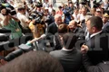 După ce a depus flori la monumentul lui Ştefan cel Mare şi Sfânt, oficialul român a făcut şi o tradiţională baie de mulţime printre sutele de oameni care-l aşteptau peste drum. Spre disperarea agenţilor de pază, el a dat mâna cu toată lumea, iar câţiva simpatizanţi înflăcăraţi au reuşit chiar să-l pupe şi să-l îmbrăţişeze.