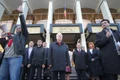 Sute de membri şi simpatizanţi ai PCRM, împreună cu parlamentarii partidului, i-au huiduit pe deputaţii coaliţiei de guvernare înainte de şedinţa extraordinară a Parlamentului, unde este discutată moţiunea de cenzură asupra activităţii Guvernului Leancă.