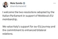 ,,În ultima perioadă, țara noastră a făcut progrese semnificative pe calea aderării la Uniunea Europeană, iar acest declarații încurajatoare reprezintă o confirmare a eforturilor depuse. Suntem mândri de drumul pe care l-am parcurs până acum și suntem hotărâți să lucrăm în continuare asupra îndeplinirii celor nouă recomandări ale Comisiei Europene, astfel încât să avem un aviz pozitiv privind începerea negocierile de aderare până la sfârșitul acestui an”, au accentuat reprezentanții diplomației moldovene, subliniind că ,,o Republică Moldova puternic ancorată în valorile și normele europene va aduce beneficii atât pentru cetățenii săi, cât și pentru întreaga regiune”.