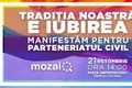 „Tradiţia noastră e iubirea şi ieşim în stradă pentru a cere legalizarea parteneriatelor civile! MozaiQ te invită sâmbătă, 21 octombrie, de la ora 14, în Piaţa Universităţii (parcul Colţea) pentru a spune răspicat că vrem legalizarea parteneriatelor civile acum! Şi noi, persoanele LGBT, plătim taxe şi trebuie să fim respectaţi de stat şi societate. Ne naştem egali şi suntem liberi să iubim, iar acest lucru trebuie sa se reflecte inclusiv în recunoaşterea din partea statului. Protestăm în Piaţa Universităţii, locul unde ne-am câştigat libertatea cu sânge. Drepturile noastre nu se negociază şi nu sunt obiect al vreunor trocuri politice!”, scrie organizaţia Mozaiq, cea care a organizat evenimentul.