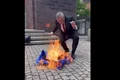Video Un bărbat a aprins focul în fața unei săli de jocuri și a amenințat că va da foc clădirii