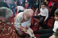 Ulterior, ia un vas cu apă şi curăţă şi sărută cu smerenie picioarele a 12 copii, reamintind astfel creştinilor gestul făcut de Mântuitor la Cina cea de Taină, când a spălat şi a sărutat picioarele ucenicilor Săi.