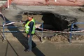 Video Momentul în care o mașină de gunoi este „înghițită” de o groapă apărută în asfalt, în centrul orașului Galați