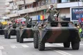 Generalul de brigadă Nicolae Tonu, locţiitor al comandantului Diviziei 4 Infanterie „Gemina”, va prezenta onorul dintr-o maşină de luptă HUMVEE (HMMWV).