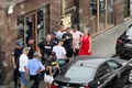 Bărbați surprinși pe capota unei mașini, în timp ce îndreptau o armă către trecători VIDEO