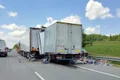 Coliziunea s-a produs între o autoutilitară care tracta o platformă, autoutilitară în care se aflau opt persoane, şi un autotren.