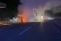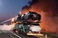 Incendiu pe A1: 8 mașini de pe un autotren au ars în totalitate. De la ce a pornit focul