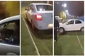 Imagini de coșmar într-o parcare din Bacău. Un tânăr a fost plimbat pe plafonul unei mașini de un șofer fără permis. A intervenit poliția