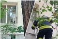 Ei au căzut de la etajul doi al unui bloc din Podu Turcului, judeţul Bacău şi au poposit pe acoperişul unei sucursale bancare din apropiere.