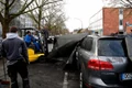 Vântul care însoţea furtuna a doborât un copac pe maşina în care se aflau, transformând-o într-un morman de fiare. Şoferul, un român de 38 de ani, a murit pe loc, mare parte din copac căzând pe partea sa. Soţia sa, care era pe locul din dreapta, a fost grav rănită.