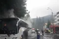 Pasagerii au ieșit la timp din autocarul cuprins de flăcări