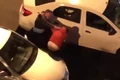 Poliţistul agresiv nu se opreşte aici şi aleargă după un alt tânăr care se afla la distanţă şi privea ceea ce se întâmplă. La un moment dat apare şi o maşină de poliţie, iar mai mulţi lucrători coboară şi îl imobilizează.