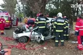 În timpul deplasării, conducătorul autospecialei de poliție, un bărbat de 47 de ani, din Râmnicu Sărat, a intrat în coliziune cu un tub de beton, ulterior lovind un stâlp de electricitate.