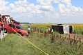 În urma loviturii, bărbatul s-a ales cu o fractură la tibie şi alte câteva leziuni la nivelul corpului si al membrelor.