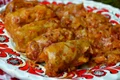 Se pun 5 litri de apă la fiert cu ciocănelele şi picioarele sparte, se spumează. Se spală burta, se taie în bucăţi potrivite, se aruncă grăsimea, se curăţă de pieliţa „zbârcită“, se freacă cu mălai şi cu oţet. Se lasă până dimineaţa în apă rece cu o linguriţă de bicarbonat, să-i scoată acidul din musculatură. După trei ore de fiert se scot oasele şi ciocănelele din oală şi se dezosează, tăind zgârciurile.