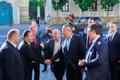 A fost întâmpinat de un grup de oameni de afaceri, printre care şi Voicu Oprean, CEO-ul AROBS, una dintre cele mai mari companii de IT din România.