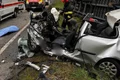 În urma impactului, două persoane au rămas încarcerate, fiind necesară intervenția echipajelor de descarcerare.