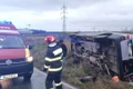Trafic oprit între Galaţi şi Tecuci după ce un ansamblu rutier s-a răsturnat
