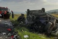 FOTO Accident cumplit pe Autostrada A1 Lugoj - Deva. Un microbuz s-a răsturnat, iar o femeie însărcinată a murit