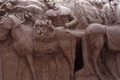 „Opt călăreţi romani, cu coifuri, scuturi şi lănci, vin din stânga, pe două drumuri diferite. Mişcările lor sunt cu atât mai violente, cu cât sunt situaţi mai aproape de centrul scenei. Trei dintre ei ameninţă cu lăncile un pileat căzut la rădăcina unui stejar – personajul principal al scenei, regele dacilor. Încercarea de a se refugia dincolo de munţi i-a fost zadarnică.