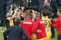 De asemenea, „Reghe“ le-a ordonat jucătorilor să încingă hora bucuriei în mijlocul terenului, iar portarul brazilian al „lupilor“, Pecanha, a sărit la bătaie, iar de aici a ieşit un circ în toată regula pe gazon. S-au împărţit pumni şi picioare, iar Romario (Petrolul) a fost eliminat de arbitrul Ovidiu Haţegan.