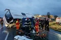 Potrivit aceleiaşi surse, pompierii intervin pentru un autoturism care a părăsit partea carosabilă şi a ajuns în şanţ, un alt autoturism a intrat în zidul separator de sens, un TIR s-a lovit frontal cu o dubă, iar alte două autoturisme s-au tamponat. În total sunt opt persoane implicate în accidente, dar doar femeia însărcinată are nevoie de asistenţă medicală.