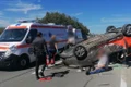 În urma impactului, ambele vehicule implicate s-au răsturnat: microbuzul pe şosea, iar autoturismul în şanţul de pe marginea drumului.