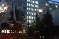 Cealaltă parte de acoperiş, de aproximativ 90 de metri pătraţi, a fost purtată de vânt şi a trecut peste şosea (str. Putnei) şi peste copacii de pe marginea drumului cu o înălţime de 20 de metri, lovind violent un bloc de locuinţe, aflat la o distanţă de aproximativ o sută de metri de clădirea internatului.
