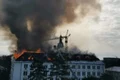 La ora respectivă, incendiul se manifesta deja destul de violent la nivelul acoperişului. Flăcările au izbucnit în exterior şi un uriaş nor de fum urca spre cer.