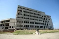 În colţul Pieţei Libertăţii cu strada Alba Iulia se află o clădire acoperită cu un mash pentru a nu se vedea degradarea.
