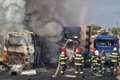 Potrivit ISU Timiş, la locul accidentului au intervenit o autospecială de primă intervenţie şi comandă, o autospecială de descarcerare, o autospecială de stingere cu apă şi spumă, trei echipaje SMURD şi cinci ambulanţe.