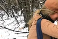 Mira Feticu plângând de emoţie la copacul unde a descoperit lucrarea Sursa Facebook Mira Feticu