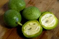 O farfurie adâncă plină cu vârf de caise verzi, 1 kg de zahăr, 3 pahare apă, zeama de la ½ lămâie.