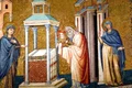 În cuvântul de învăţătură rostit de Preasfinţitul Părinte Episcop Nicodim, le-a vorbit despre însemnătatea acestei mari sărbători, a Întâmpinării Mântuitorului Hristos şi i-a urat mult spor pe calea mântuirii şi păstorire binecuvântată. Lăcaşul de cult a fost construit între anii 1920-1930 şi a fost sfinţit pe data de 12 octombrie 1930. Ierarhul de atunci P.S. Vartolomeu, Episcopul Râmnicului Noului Severin, i-a aşezat două hramuri: „Pogorârea Sf. Duh” şi „Sf. Ierarh Nicolae”.