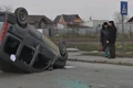 FOTO Accident pe Dobrina, lângă mănăstire. Un şofer basarabean a ratat o curbă, din cauza vitezei, răsturnându-se
