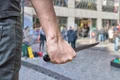 O femeie a auzit mieunatul animalului şi a sunat la 112, cerând ajutor pentru a-l elibera.